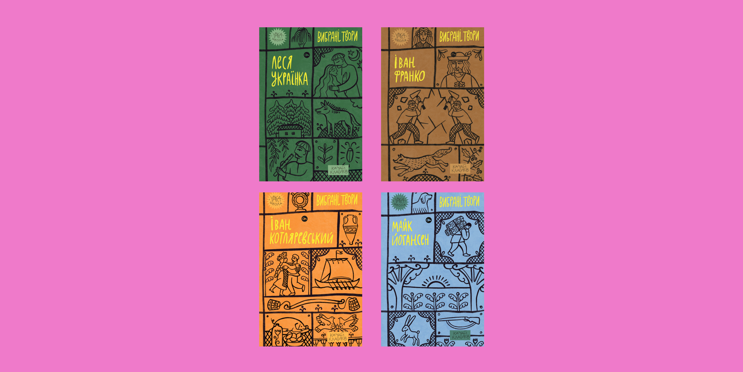 Добірка переосмислює шкільну програму з української літератури: знайомі тексти постають в осучасненому форматі — лаконічні обкладинки, зрозумілі коментарі, новий тон розмови з читачем.